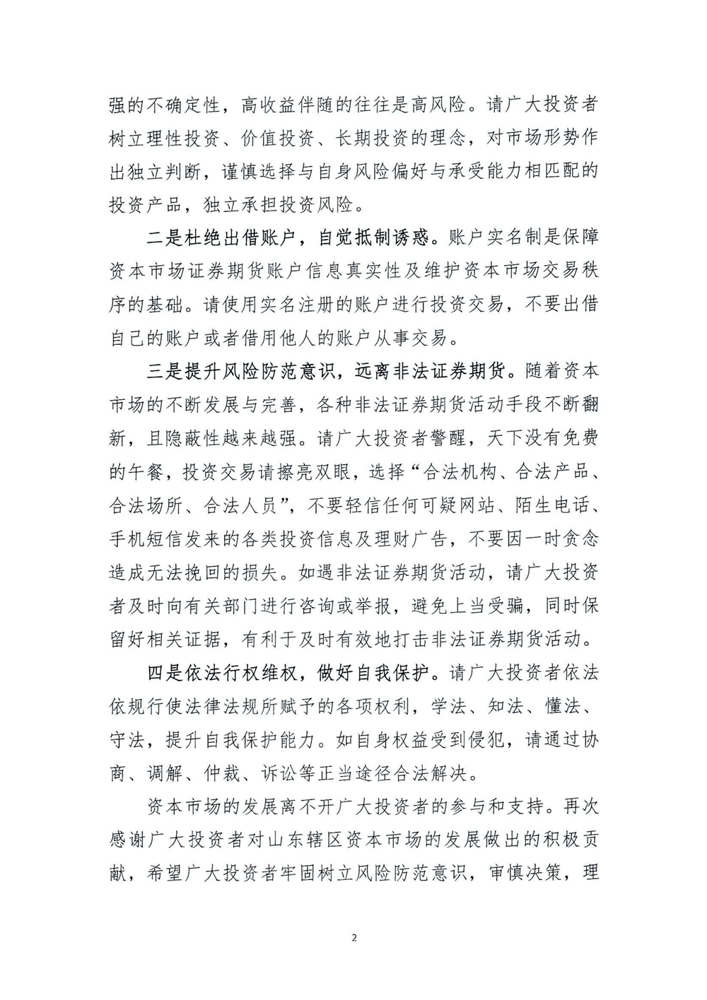 理性认识市场 投资量力而行——致广大投资者的一封信