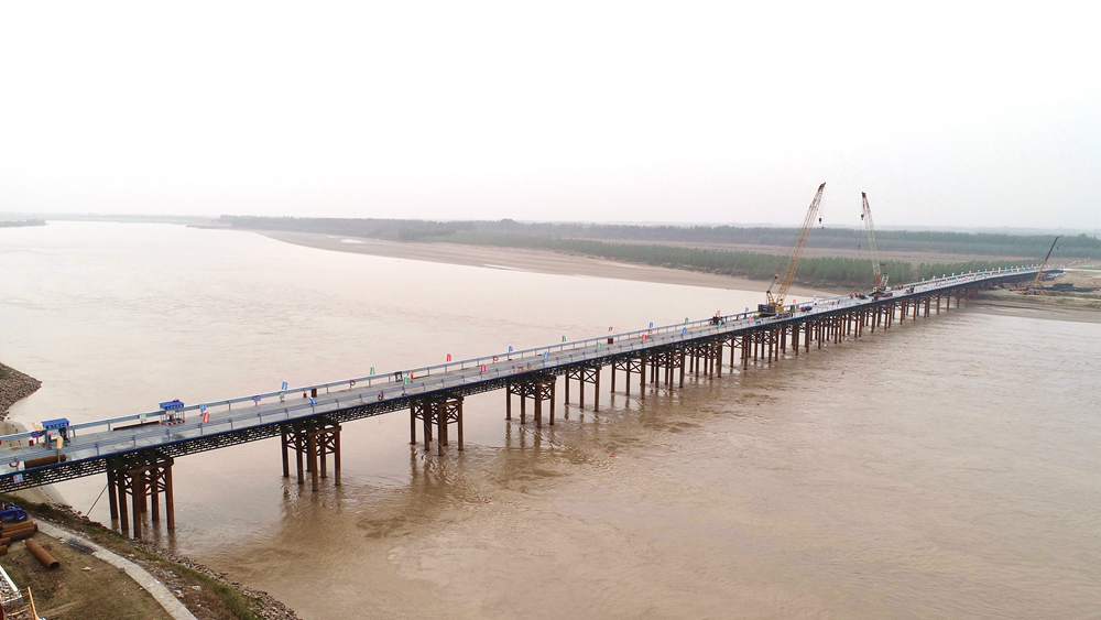 郑济铁路(山东段)长清跨黄河特大桥施工栈桥顺利
