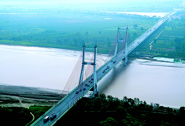 φ1.8m钻孔灌注桩240棵,φ2.0m钻孔灌注桩97棵,承台50个,系梁1道,薄壁墩12个,柱式墩80个,支座115个,45米箱梁24跨,46米箱梁20跨,主桥高197米,塔柱一座,钢锚箱安装21节,钢箱梁吊装46段,斜拉索左右幅各24对,引桥外侧护栏2000米,中央分隔带底座1000米,伸缩缝12道。