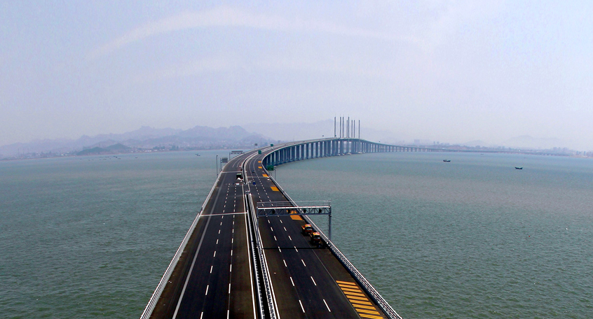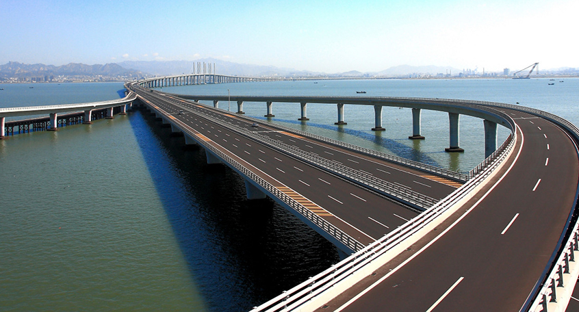 沧口航道桥(600m)+非通航孔桥下部(54×60m)(右幅)和沧口航道桥(600m)+非通航孔桥下部(52×60m)(左幅)。